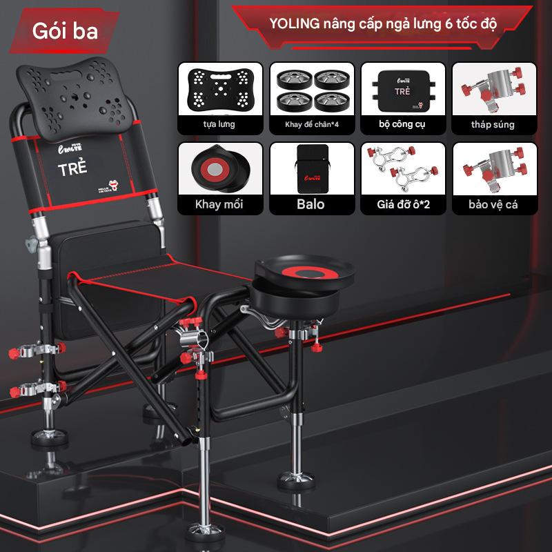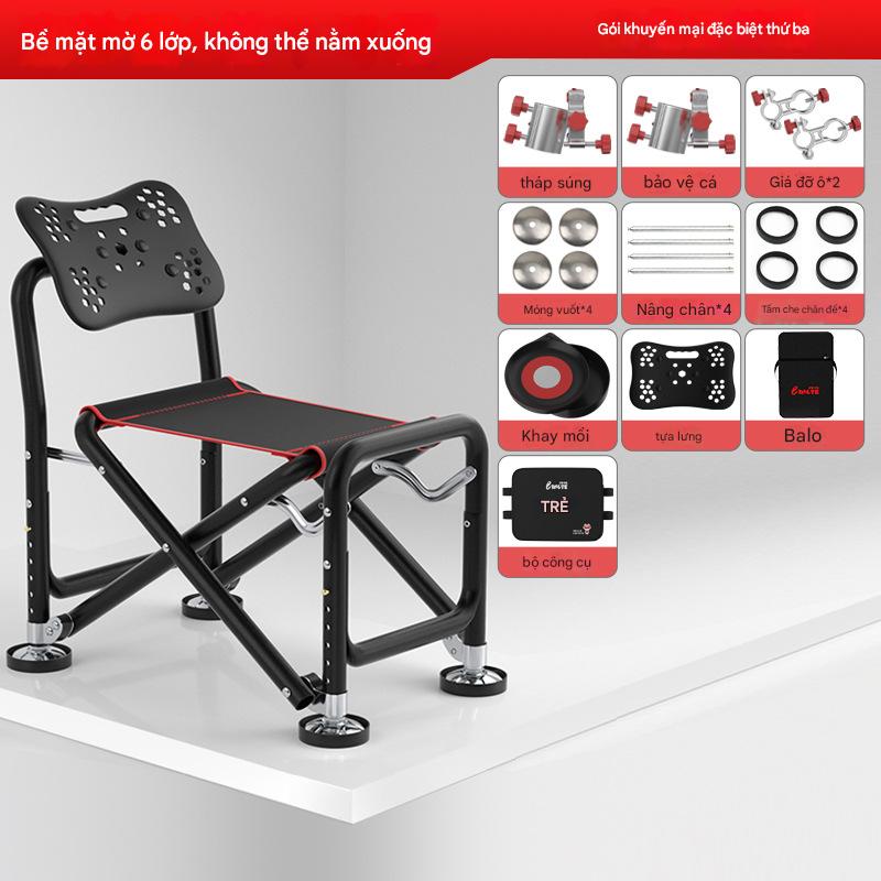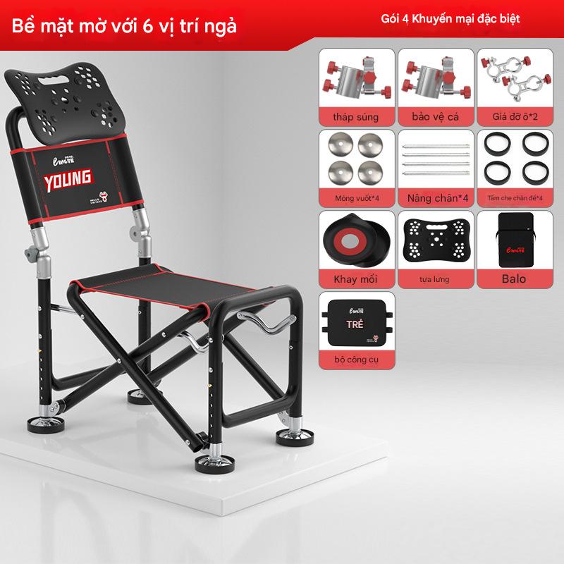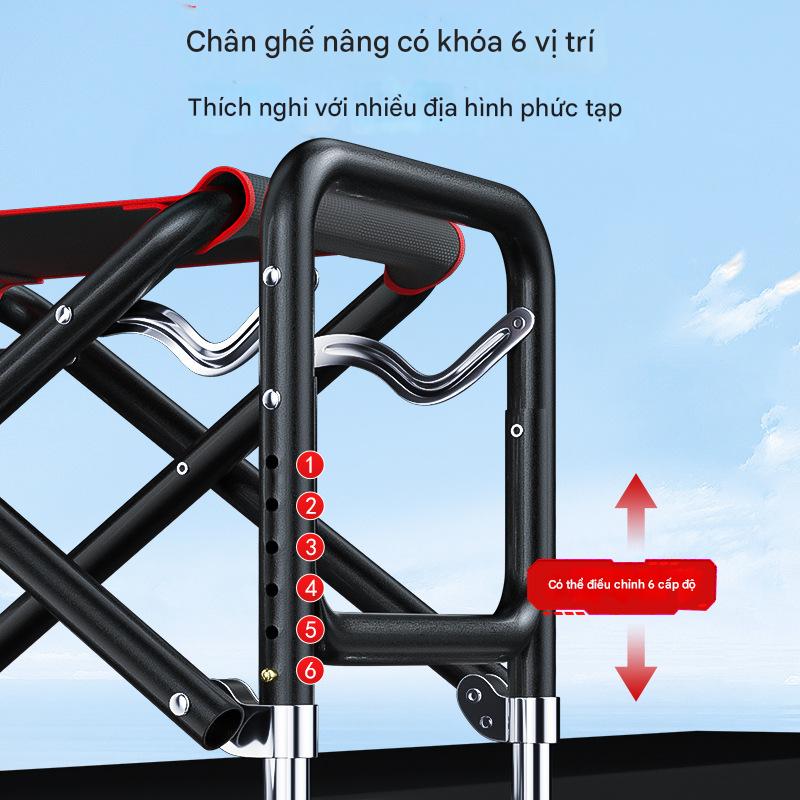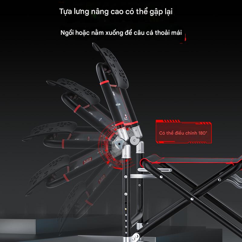 ghế câu đài địa hình full pass chất liệu hợp kim nhôm dc phủ hợp kim đen chống dỉ xét ghế tích hợp chân nhiều nút thích hợp ngồi cho nhiều địa hình ghế có tựa lưng điều chỉnh dc có thể ngả ra ngủ chống mỏi lưng hoàn chỉnh phụ kiện ghế gồm: