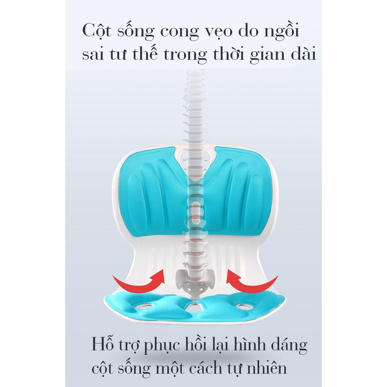 - Điểm đặc biệt chỉ có ở ghế chỉnh tư thế là có thêm 1 gối nhỏ kê lưng, có thể điều chỉnh cao thấp dễ dàng. Từ đó giúp người dùng dù cao thấp khác nhau thì cột sống vẫn được nâng đỡ tối đa