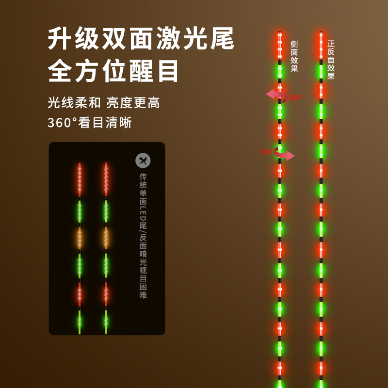 - Tăm phao trong ống bọc cực kỳ mềm dẻo, với ánh sáng mạnh trong bóng tối dễ nhận biết được làm bằng sợi thủy tinh, đặc biệt mềm dẻo. có thể uốn cong 1 vòng tròn