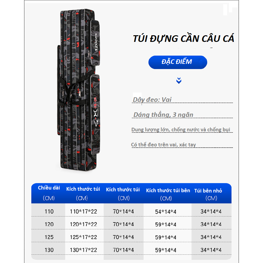 Túi Đựng Cần Câu Cá, Bao Đựng Cần, 2 Ngăn Và 3 Ngăn Cao Cấp Mẫu Hoa Nhí Đủ Kích thước